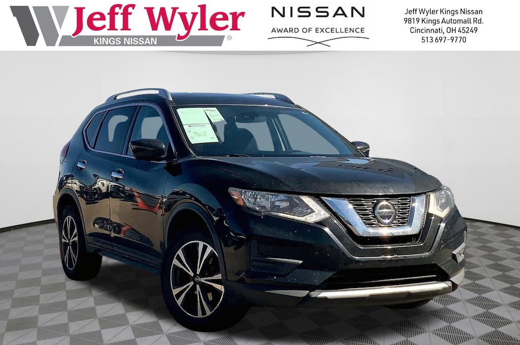 Jeff Wyler Kings Nissan is delighted to offer this good-looking 2019 Nissan Rogue SV in Magnetic Black Pearl. Well equipped with: Sun & Sound Touring Package (18" Aluminum Alloy Wheels, Electronic Parking Brake, Heated Leather-Wrapped Steering Wheel, Intelligent Aroundview Monitor (I-AVM), Intelligent Cruise Control, Memory Driver Seat & Outside Mirrors, Power Panoramic Moonroof, ProPILOT Assist, Radio: AM/FM/CD/AUX NissanConnect w/Navigation, and Steering Assist), AWD, 17" Aluminum Alloy Wheels, 4-Wheel Disc Brakes, 6 Speakers, 6.386 Axle Ratio, ABS brakes, Air Conditioning, Alloy wheels, AM/FM radio: SiriusXM, Anti-whiplash front head restraints, Auto High-beam Headlights, Automatic temperature control, Black Splash Guards (Set of 4), Blind Spot Warning, Brake assist, Bumpers: body-color, CD player, Chrome Rear Bumper Protector, Cloth Seat Trim, Delay-off headlights, Driver door bin, Driver vanity mirror, Dual front impact airbags, Dual front side impact airbags, Electronic Stability Control, First Aid Kit, Floor Mats & 2-PC Cargo Area Protector, Four wheel independent suspension, Front anti-roll bar, Front Bucket Seats, Front Center Armrest w/Storage, Front dual zone A/C, Front reading lights, Fully automatic headlights, Heated door mirrors, Heated Front Bucket Seats, Heated front seats, Illuminated entry, Leather Shift Knob, Low tire pressure warning, NissanConnect featuring Apple CarPlay and Android Auto, Occupant sensing airbag, Outside temperature display, Overhead airbag, Overhead console, Panic alarm, Passenger door bin, Passenger vanity mirror, Power door mirrors, Power driver seat, Power Liftgate, Power steering, Power windows, Radio data system, Radio: AM/FM/CD/AUX, Rear anti-roll bar, Rear Parking Sensors, Rear seat center armrest, Rear window defroster, Rear window wiper, Remote keyless entry, Roof rack: rails only, Security system, Speed control, Speed-sensing steering, Split folding rear seat, Spoiler, Steering wheel mounted audio controls, Tachometer, Telescoping steering wheel, Tilt steering wheel, Traction control, Trip computer, Turn signal indicator mirrors, and Variably intermittent wipers.Ask about available certifications.