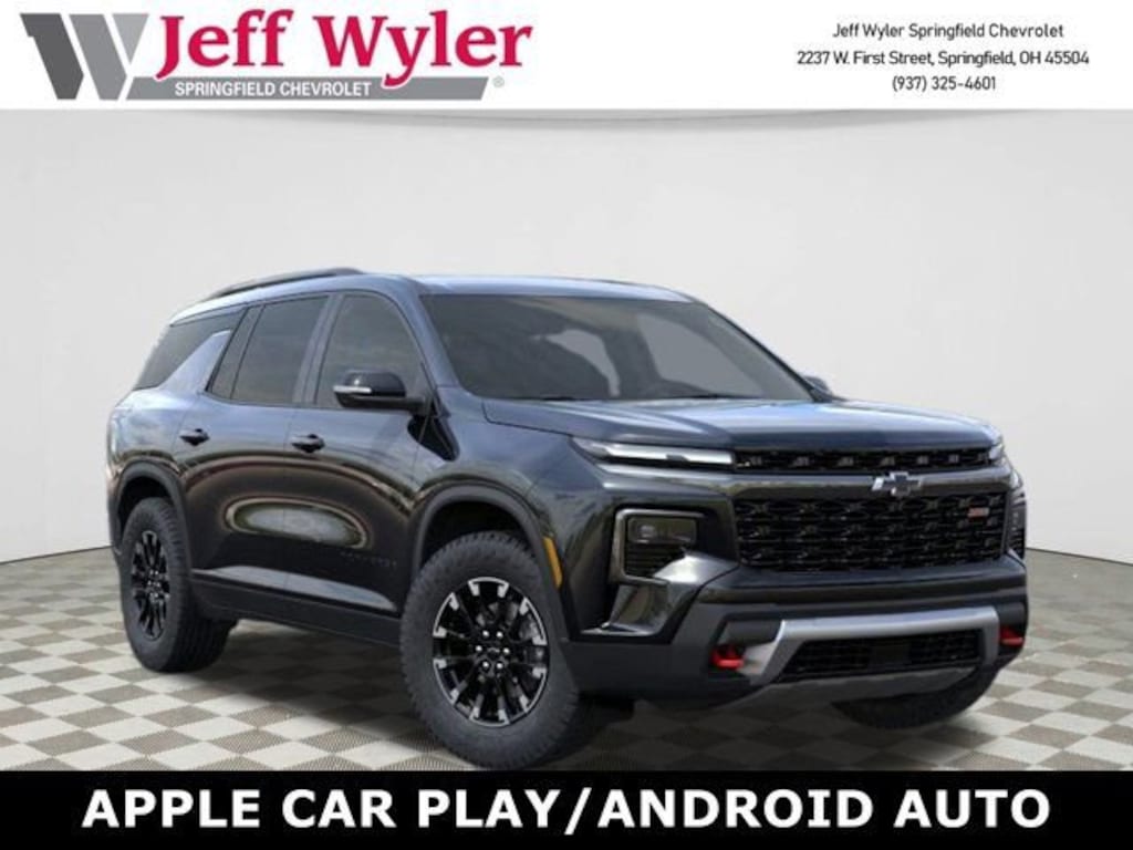 Jeff Wyler Springfield Auto Mall is very proud to offer this wonderful-looking 2026 Chevrolet Traverse Z71 in Black Metallic. Well equipped with: 3rd row seats: split-bench, 4-Way Manual Front Passenger Seat Adjuster, 4-Wheel Disc Brakes, 6 Speakers, 6-Speaker Audio System Feature, 8-Way Power Driver Seat Adjuster, ABS brakes, Air Conditioning, Alloy wheels, AM/FM radio: SiriusXM with 360L, Apple CarPlay/Android Auto, Auto High-beam Headlights, Automatic temperature control, Brake assist, Child-Seat-Sensing Airbag, Compass, Delay-off headlights, Driver door bin, Driver vanity mirror, Dual front impact airbags, Dual front side impact airbags, Electronic Stability Control, Emergency communication system: OnStar, Evotex Seat Trim, Four wheel independent suspension, Front anti-roll bar, Front Bucket Seats, Front Center Armrest, Front dual zone A/C, Front reading lights, Fully automatic headlights, Heated door mirrors, Heated Driver and Front Passenger Seats, Heated front seats, Heated steering wheel, Illuminated entry, Low tire pressure warning, Navigation System, Occupant sensing airbag, Outside temperature display, Overhead airbag, Overhead console, Panic alarm, Passenger door bin, Passenger vanity mirror, Power door mirrors, Power driver seat, Power Liftgate, Power steering, Power windows, Radio data system, Radio: : Audio System w/17.7 Diagonal Display, Rear air conditioning, Rear anti-roll bar, Rear reading lights, Rear window defroster, Rear window wiper, Remote keyless entry, Security system, SiriusXM with 360L Trial Subscription, Speed control, Speed-sensing steering, Spoiler, Steering wheel mounted audio controls, Tachometer, Telescoping steering wheel, Tilt steering wheel, Traction control, Trip computer, Turn signal indicator mirrors, Variably intermittent wipers, Voltmeter, and Wheels: : 18 High Gloss Black Painted Aluminum. 20/24 City/Highway MPGWyler Family First Package Includes: NanoCure Appearance Protection: Exterior & Interior Chemical Sealant Applied to Protect Against Environmental Hazards (7 Year Warranty Coverage). Pulse- Rear end Collision Avoidance System Theft Deterrent Strategy gives you 5 Years of Coverage against vehicle Theft, Offering up to a $5,000 benefit.