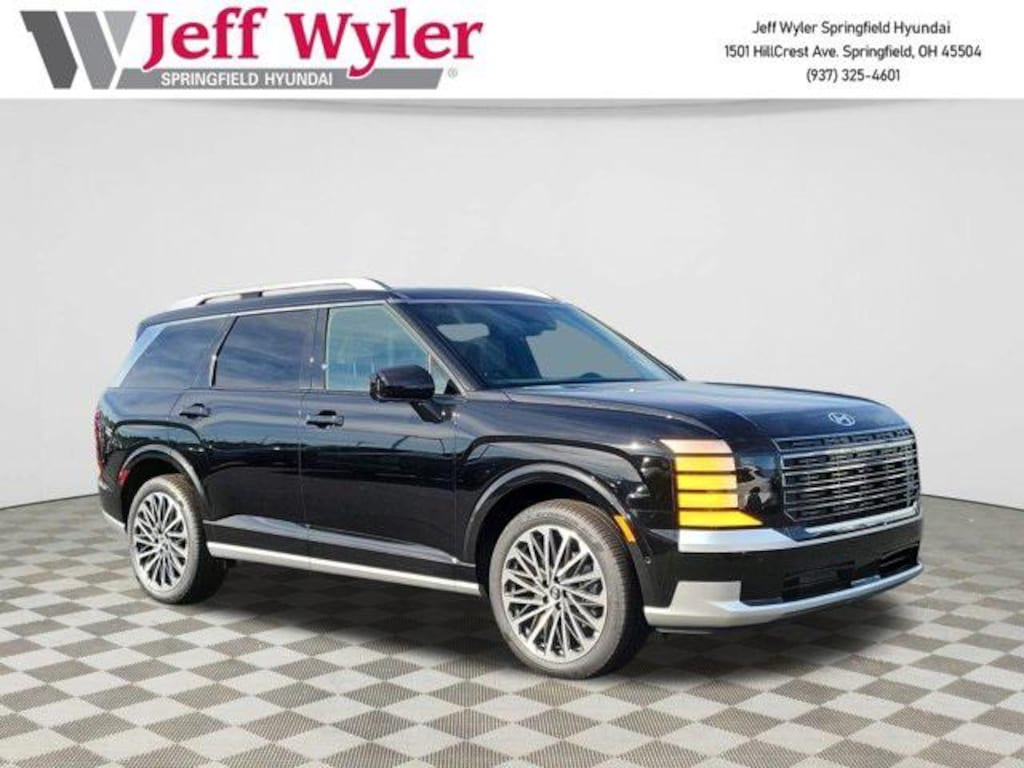 Jeff Wyler Springfield Auto Mall is pleased to offer this great 2026 Hyundai Palisade Calligraphy in Abyss Black Pearl. Well equipped with: Option Group 01, 14 Speakers, 3rd row seats: split-bench, 4-Wheel Disc Brakes, ABS brakes, Air Conditioning, Alloy wheels, AM/FM radio: SiriusXM, Apple CarPlay & Android Auto, Audio memory, Auto High-beam Headlights, Auto-dimming door mirrors, Auto-dimming Rear-View mirror, Auto-leveling suspension, Automatic temperature control, Brake assist, Bumpers: body-color, Cargo Cover, Cargo Net, Cargo Tray, Carpeted Floor Mats, Compass, Delay-off headlights, Driver door bin, Driver vanity mirror, Dual front impact airbags, Dual front side impact airbags, Electronic Stability Control, Emergency communication system: Bluelink+, Exterior Parking Camera Rear, Four wheel independent suspension, Front anti-roll bar, Front Bucket Seats, Front Center Armrest, Front dual zone A/C, Front reading lights, Fully automatic headlights, Garage door transmitter: HomeLink, Genuine wood console insert, Genuine wood dashboard insert, Heads-Up Display, Heated & Ventilated Front Bucket Seats, Heated door mirrors, Heated front seats, Heated rear seats, Heated steering wheel, HVAC memory, Illuminated entry, Knee airbag, Leather steering wheel, Low tire pressure warning, Memory seat, Navigation System, Occupant sensing airbag, Outside temperature display, Overhead airbag, Overhead console, Panic alarm, Passenger door bin, Passenger vanity mirror, Power door mirrors, Power driver seat, Power Liftgate, Power moonroof, Power passenger seat, Power steering, Power windows, Premium Nappa Leather Seat Trim, Radio data system, Radio: Infotainment Navigation System, Rain sensing wipers, Rear air conditioning, Rear anti-roll bar, Rear audio controls, Rear reading lights, Rear side impact airbag, Rear window defroster, Rear window wiper, Reclining 3rd row seat, Remote keyless entry, Security system, Speed control, Split folding rear seat, Spoiler, Steering wheel mounted audio controls, Tachometer, Telescoping steering wheel, Tilt steering wheel, Traction control, Trip computer, Turn signal indicator mirrors, Variably intermittent wipers, Ventilated front seats, Ventilated rear seats, and Wheels: 21" x 8.5J Alloy. 18/24 City/Highway MPGWyler Family First Package Includes: NanoCure Appearance Protection: Exterior & Interior Chemical Sealant Applied to Protect Against Environmental Hazards (7 Year Warranty Coverage). Pulse- Rear end Collision Avoidance System Theft Deterrent Strategy gives you 5 Years of Coverage against vehicle Theft, Offering up to a $5,000 benefit.