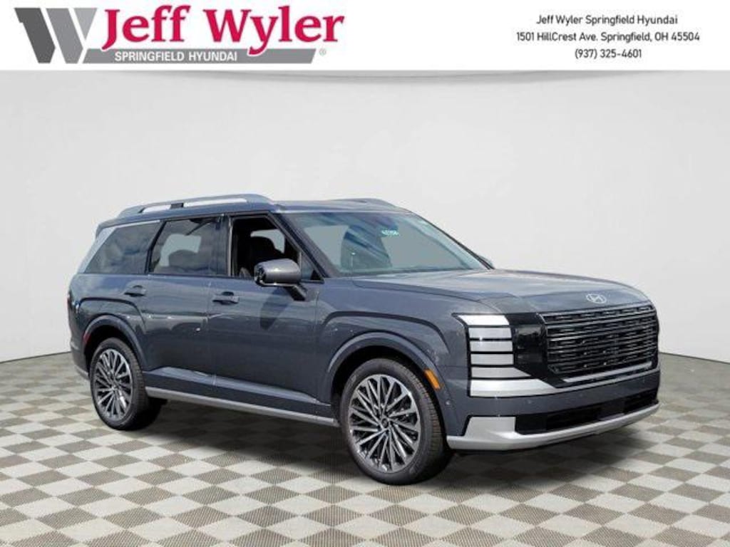 Jeff Wyler Springfield Auto Mall is honored to offer this fantastic 2026 Hyundai Palisade Calligraphy in Ecotronic Gray Pearl. Well equipped with: Option Group 01, 14 Speakers, 3rd row seats: split-bench, 4-Wheel Disc Brakes, ABS brakes, Air Conditioning, Alloy wheels, AM/FM radio: SiriusXM, Apple CarPlay & Android Auto, Audio memory, Auto High-beam Headlights, Auto-dimming door mirrors, Auto-dimming Rear-View mirror, Auto-leveling suspension, Automatic temperature control, Brake assist, Bumpers: body-color, Cargo Cover, Cargo Tray, Carpeted Floor Mats, Compass, Delay-off headlights, Driver door bin, Driver vanity mirror, Dual front impact airbags, Dual front side impact airbags, Electronic Stability Control, Emergency communication system: Bluelink+, Exterior Parking Camera Rear, First Aid Kit, Four wheel independent suspension, Front anti-roll bar, Front Bucket Seats, Front Center Armrest, Front dual zone A/C, Front reading lights, Fully automatic headlights, Garage door transmitter: HomeLink, Genuine wood console insert, Genuine wood dashboard insert, Heads-Up Display, Heated & Ventilated Front Bucket Seats, Heated door mirrors, Heated front seats, Heated rear seats, Heated steering wheel, HVAC memory, Illuminated entry, Knee airbag, Leather steering wheel, Low tire pressure warning, Memory seat, Navigation System, Occupant sensing airbag, Outside temperature display, Overhead airbag, Overhead console, Panic alarm, Passenger door bin, Passenger vanity mirror, Power door mirrors, Power driver seat, Power Liftgate, Power moonroof, Power passenger seat, Power steering, Power windows, Premium Nappa Leather Seat Trim, Radio data system, Radio: Infotainment Navigation System, Rain sensing wipers, Rear air conditioning, Rear anti-roll bar, Rear audio controls, Rear reading lights, Rear side impact airbag, Rear window defroster, Rear window wiper, Reclining 3rd row seat, Remote keyless entry, Security system, Speed control, Split folding rear seat, Spoiler, Steering wheel mounted audio controls, Tachometer, Telescoping steering wheel, Tilt steering wheel, Traction control, Trip computer, Turn signal indicator mirrors, Variably intermittent wipers, Ventilated front seats, Ventilated rear seats, and Wheels: 21" x 8.5J Alloy. 18/24 City/Highway MPGWyler Family First Package Includes: NanoCure Appearance Protection: Exterior & Interior Chemical Sealant Applied to Protect Against Environmental Hazards (7 Year Warranty Coverage). Pulse- Rear end Collision Avoidance System Theft Deterrent Strategy gives you 5 Years of Coverage against vehicle Theft, Offering up to a $5,000 benefit.