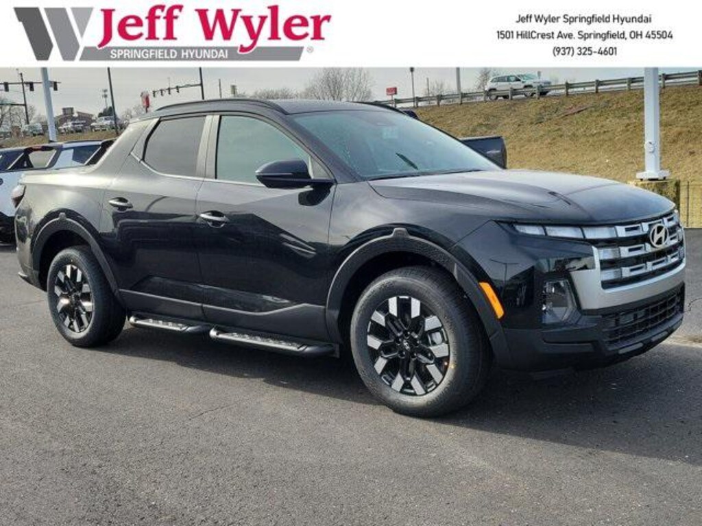 Priced below KBB Fair Purchase Price! Jeff Wyler Springfield Auto Mall is excited to offer this wonderful 2026 Hyundai Santa Cruz SEL in Phantom Black. Well equipped with: Option Group 01, 18" x 7.5J Alloy Wheels, 4-Wheel Disc Brakes, 4.081 Axle Ratio, 6 Speakers, ABS brakes, Air Conditioning, Alloy wheels, AM/FM radio: SiriusXM, Apple CarPlay & Android Auto, Auto High-beam Headlights, Auto-leveling suspension, Automatic temperature control, Brake assist, Bumpers: body-color, Carpeted Floor Mats, Compass, Delay-off headlights, Driver door bin, Driver vanity mirror, Dual front impact airbags, Dual front side impact airbags, Electronic Stability Control, Emergency communication system: None, Exterior Parking Camera Rear, First Aid Kit, Four wheel independent suspension, Front anti-roll bar, Front Bucket Seats, Front Center Armrest, Front dual zone A/C, Front reading lights, Fully automatic headlights, H-Tex Leatherette Seat Trim, Heated door mirrors, Heated Front Bucket Seats, Heated front seats, Illuminated entry, Low tire pressure warning, Occupant sensing airbag, Outside temperature display, Overhead airbag, Overhead console, Panic alarm, Passenger door bin, Passenger vanity mirror, Power door mirrors, Power driver seat, Power moonroof, Power steering, Power windows, Radio data system, Radio: AM/FM/HD Audio System, Rear anti-roll bar, Rear reading lights, Rear side impact airbag, Rear step bumper, Rear window defroster, Remote keyless entry, Security system, Side Steps, Speed control, Speed-sensing steering, Split folding rear seat, Spoiler, Steering wheel mounted audio controls, Tachometer, Telescoping steering wheel, Tilt steering wheel, Traction control, Trip computer, Turn signal indicator mirrors, and Variably intermittent wipers. 21/29 City/Highway MPG 21/29 City/Highway MPGWyler Family First Package Includes: NanoCure Appearance Protection: Exterior & Interior Chemical Sealant Applied to Protect Against Environmental Hazards (7 Year Warranty Coverage). Pulse- Rear end Collision Avoidance System Theft Deterrent Strategy gives you 5 Years of Coverage against vehicle Theft, Offering up to a $5,000 benefit. $1,250 - Exp. 01/31/2026