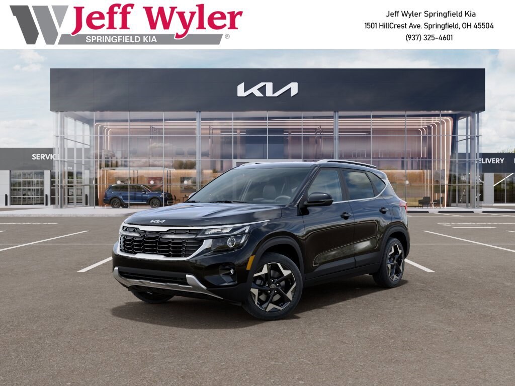 Jeff Wyler Springfield Auto Mall is honored to offer this gorgeous-looking 2026 Kia Seltos EX in Black. Well equipped with: 4-Wheel Disc Brakes, 6 Speakers, ABS brakes, Air Conditioning, Alloy wheels, AM/FM radio: SiriusXM, Apple CarPlay & Android Auto, Artificial Leather Seat Trim, Auto High-beam Headlights, Automatic temperature control, Brake assist, Bumpers: body-color, Delay-off headlights, Driver door bin, Driver vanity mirror, Dual front impact airbags, Dual front side impact airbags, Electronic Stability Control, Emergency communication system: 911 Connect, Exterior Parking Camera Rear, Four wheel independent suspension, Front anti-roll bar, Front Bucket Seats, Front Center Armrest, Front fog lights, Front reading lights, Fully automatic headlights, Heated door mirrors, Heated Front Bucket Seats (3-Steps), Heated front seats, Illuminated entry, Leather Shift Knob, Leather steering wheel, Low tire pressure warning, Navigation System, Occupant sensing airbag, Outside temperature display, Overhead airbag, Overhead console, Panic alarm, Passenger door bin, Passenger vanity mirror, Power door mirrors, Power driver seat, Power Liftgate, Power steering, Power windows, Radio: AM/FM/HD/Satellite Display System with Navigation, Rear seat center armrest, Rear window defroster, Rear window wiper, Remote keyless entry, Security system, Speed control, Speed-sensing steering, Split folding rear seat, Spoiler, Steering wheel mounted audio controls, Tachometer, Telescoping steering wheel, Tilt steering wheel, Traction control, Trip computer, Turn signal indicator mirrors, Variably intermittent wipers, and Wheels: 17" Alloy with Machined Finish. 27/31 City/Highway MPG 27/31 City/Highway MPGWyler Family First Package Includes: NanoCure Appearance Protection: Exterior & Interior Chemical Sealant Applied to Protect Against Environmental Hazards (7 Year Warranty Coverage). Pulse- Rear end Collision Avoidance System Theft Deterrent Strategy gives you 5 Years of Coverage against vehicle Theft, Offering up to a $5,000 benefit.