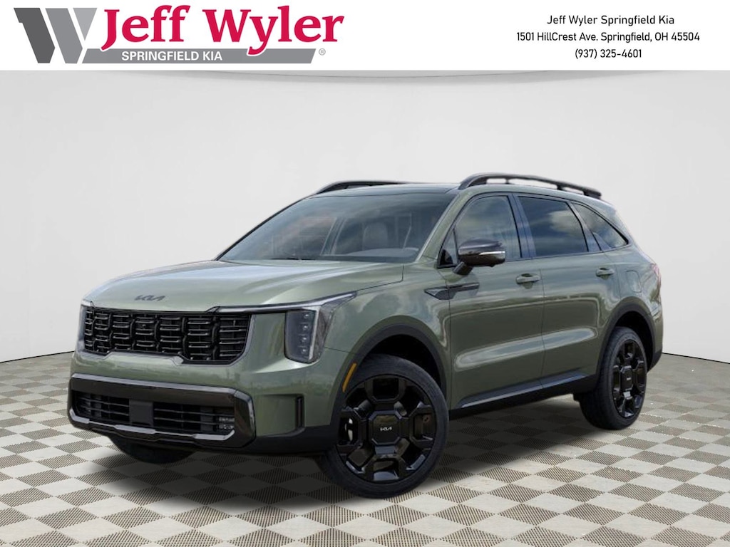 Jeff Wyler Springfield Auto Mall is pleased to offer this attractive 2026 Kia Sorento X-Line SX Prestige in Green. Well equipped with: 12 Speakers, 3rd row seats: split-bench, 4-Wheel Disc Brakes, ABS brakes, Air Conditioning, Alloy wheels, AM/FM radio: SiriusXM, Apple CarPlay & Android Auto, Auto High-beam Headlights, Auto-dimming Rear-View mirror, Automatic temperature control, Brake assist, Bumpers: body-color, Delay-off headlights, Driver door bin, Driver vanity mirror, Dual front impact airbags, Dual front side impact airbags, Electronic Stability Control, Emergency communication system: 911 Connect, Exterior Parking Camera Rear, Four wheel independent suspension, Front anti-roll bar, Front Bucket Seats, Front Center Armrest, Front dual zone A/C, Front fog lights, Front reading lights, Fully automatic headlights, Garage door transmitter: HomeLink, Heated & Ventilated Front Bucket Seats, Heated door mirrors, Heated front seats, Heated rear seats, Heated steering wheel, Illuminated entry, Knee airbag, Leather Shift Knob, Leather steering wheel, Low tire pressure warning, Memory seat, Navigation System, Occupant sensing airbag, Outside temperature display, Overhead airbag, Overhead console, Panic alarm, Passenger door bin, Passenger vanity mirror, Perforated Genuine Leather Seat Trim, Power door mirrors, Power driver seat, Power Liftgate, Power moonroof, Power passenger seat, Power steering, Power windows, Radio data system, Radio: AM/FM Bose Premium Audio System, Rain sensing wipers, Rear anti-roll bar, Rear reading lights, Rear side impact airbag, Rear window defroster, Rear window wiper, Remote keyless entry, Security system, Speed control, Speed-sensing steering, Split folding rear seat, Spoiler, Steering wheel mounted audio controls, Tachometer, Telescoping steering wheel, Tilt steering wheel, Traction control, Trip computer, Turn signal indicator mirrors, Variably intermittent wipers, Ventilated front seats, and Wheels: 20" Gloss Black X-Line Alloy. 20/27 City/Highway MPG 20/27 City/Highway MPGWyler Family First Package Includes: NanoCure Appearance Protection: Exterior & Interior Chemical Sealant Applied to Protect Against Environmental Hazards (7 Year Warranty Coverage). Pulse- Rear end Collision Avoidance System Theft Deterrent Strategy gives you 5 Years of Coverage against vehicle Theft, Offering up to a $5,000 benefit.
