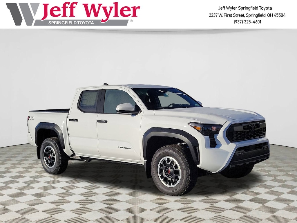Jeff Wyler Springfield Auto Mall is pleased to offer this gorgeous 2025 Toyota Tacoma TRD Off-Road in Ice Cap. Well equipped with: 3.583 Axle Ratio, 4-Wheel Disc Brakes, 6 Speakers, ABS brakes, Air Conditioning, Alloy wheels, AM/FM radio: SiriusXM, Anti-whiplash front head restraints, Apple CarPlay/Android Auto, Auto High-beam Headlights, Auto-dimming Rear-View mirror, Automatic temperature control, Brake assist, Bumpers: body-color, Driver door bin, Driver vanity mirror, Dual front impact airbags, Dual front side impact airbags, Electronic Stability Control, Emergency communication system: Safety Connect (1-year trial), Exterior Parking Camera Rear, Fabric Seat Trim, Four wheel independent suspension, Front anti-roll bar, Front Bucket Seats, Front Center Armrest, Front fog lights, Front reading lights, Fully automatic headlights, Heated door mirrors, Illuminated entry, JBL Premium Audio, Knee airbag, Leather Shift Knob, Leather steering wheel, Low tire pressure warning, Occupant sensing airbag, Outside temperature display, Overhead airbag, Overhead console, Panic alarm, Passenger door bin, Passenger vanity mirror, Power door mirrors, Power steering, Power windows, Radio: 8" Toyota Audio Multimedia, Rear step bumper, Rear window defroster, Remote keyless entry, Security system, SofTex Seat Trim, Speed control, Speed-sensing steering, Split folding rear seat, Steering wheel mounted audio controls, Tachometer, Telescoping steering wheel, Tilt steering wheel, Traction control, Trip computer, Turn signal indicator mirrors, Variably intermittent wipers, and Wheels: 17" TRD Off-Road Alloy. 19/23 City/Highway MPGWyler Family First Package Includes: NanoCure Appearance Protection: Exterior & Interior Chemical Sealant Applied to Protect Against Environmental Hazards (7 Year Warranty Coverage). Pulse- Rear end Collision Avoidance System Theft Deterrent Strategy gives you 5 Years of Coverage against vehicle Theft, Offering up to a $5,000 benefit.