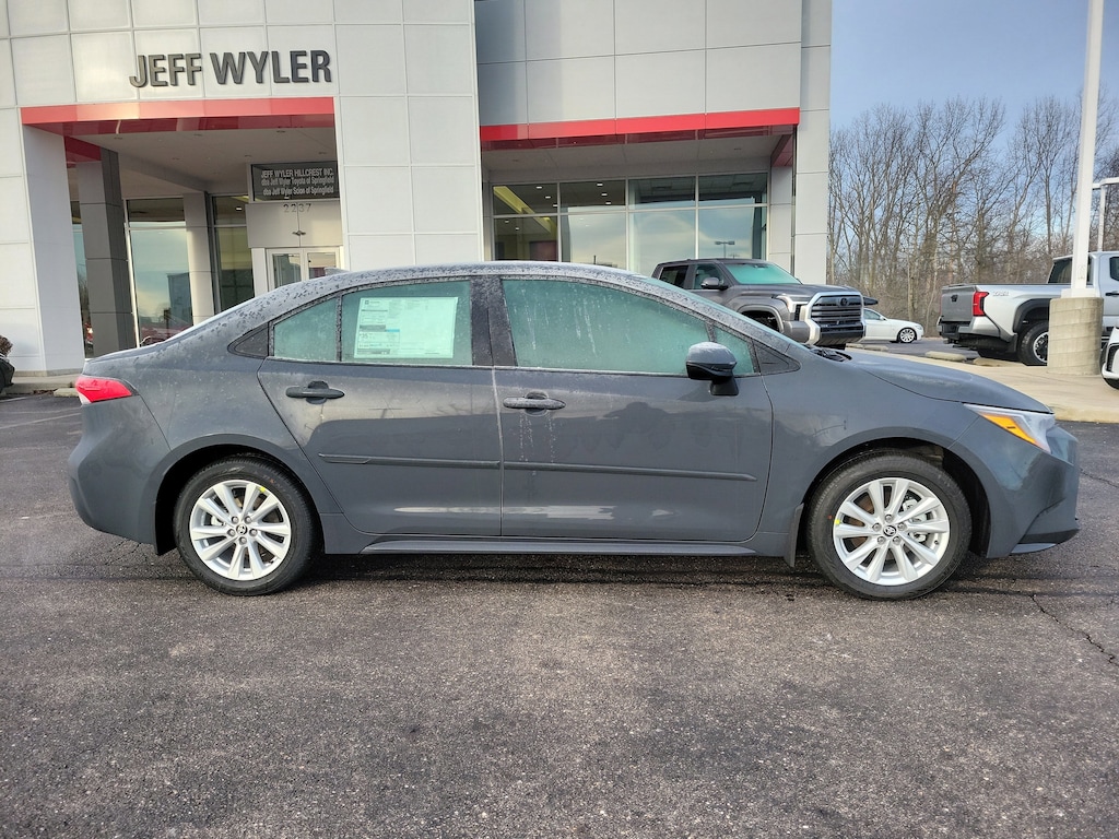Jeff Wyler Springfield Auto Mall is delighted to offer this beautiful 2026 Toyota Corolla LE in 01l7/Underground. Well equipped with: All Weather Floor Liner Package, LE Premium Package (16" Alloy Wheels and Smart Key System), 4-Wheel Disc Brakes, 6 Speakers, ABS brakes, Air Conditioning, AM/FM radio: SiriusXM, Apple CarPlay/Android Auto, Auto High-beam Headlights, Automatic temperature control, Body Side Molding, Brake assist, Bumpers: body-color, Delay-off headlights, Door Edge Guards, Driver door bin, Driver vanity mirror, Dual front impact airbags, Dual front side impact airbags, Electronic Stability Control, Emergency communication system: Safety Connect (up to 10-year trial subscription), Exterior Parking Camera Rear, Fabric Seat Trim, Front anti-roll bar, Front Bucket Seats, Front Center Armrest, Front reading lights, Front wheel independent suspension, Fully automatic headlights, Heated door mirrors, Illuminated entry, Knee airbag, Low tire pressure warning, Mudguards, Occupant sensing airbag, Outside temperature display, Overhead airbag, Panic alarm, Passenger door bin, Passenger vanity mirror, Power door mirrors, Power steering, Power windows, Radio data system, Radio: 8" Toyota Audio Multimedia, Rear anti-roll bar, Rear seat center armrest, Rear side impact airbag, Rear window defroster, Remote keyless entry, SiriusXM Trial Offering: 33 Months, Speed control, Split folding rear seat, Steering wheel mounted audio controls, Tachometer, Telescoping steering wheel, Tilt steering wheel, Traction control, Trip computer, and Wheels: 16" Steel with Covers. 32/41 City/Highway MPG 32/41 City/Highway MPGWyler Family First Package Includes: NanoCure Appearance Protection: Exterior & Interior Chemical Sealant Applied to Protect Against Environmental Hazards (7 Year Warranty Coverage). Pulse- Rear end Collision Avoidance System Theft Deterrent Strategy gives you 5 Years of Coverage against vehicle Theft, Offering up to a $5,000 benefit.