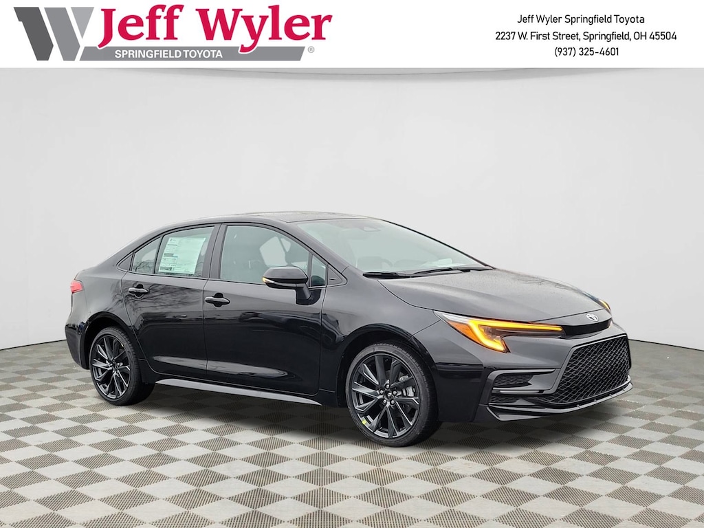 Jeff Wyler Springfield Auto Mall is proud to offer this beautiful-looking 2026 Toyota Corolla SE in Midnight Black Metallic. Well equipped with: All Weather Floor Liner Package, SE Package (12.3" Digital Gauge Cluster, Qi-Compatible Wireless Smartphone Charger, and Radio: 10.5" Toyota Audio Multimedia), 4-Wheel Disc Brakes, 6 Speakers, ABS brakes, Air Conditioning, Alloy wheels, AM/FM radio: SiriusXM, Apple CarPlay/Android Auto, Auto High-beam Headlights, Automatic temperature control, Brake assist, Bumpers: body-color, Delay-off headlights, Driver door bin, Driver vanity mirror, Dual front impact airbags, Dual front side impact airbags, Electronic Stability Control, Emergency communication system: Safety Connect (up to 10-year trial subscription), Exterior Parking Camera Rear, Fabric Seat Trim, Four wheel independent suspension, Front anti-roll bar, Front Bucket Seats, Front Center Armrest, Front reading lights, Front Sport Seats, Fully automatic headlights, Heated door mirrors, Illuminated entry, Knee airbag, Leather steering wheel, Low tire pressure warning, Occupant sensing airbag, Outside temperature display, Overhead airbag, Panic alarm, Passenger door bin, Passenger vanity mirror, Power door mirrors, Power steering, Power windows, Radio data system, Radio: 8" Toyota Audio Multimedia, Rear anti-roll bar, Rear seat center armrest, Rear side impact airbag, Rear window defroster, Remote keyless entry, Speed control, Split folding rear seat, Spoiler, Steering wheel mounted audio controls, Tachometer, Telescoping steering wheel, Tilt steering wheel, Traction control, Trip computer, Turn signal indicator mirrors, Variably intermittent wipers, and Wheels: 18" Alloy with Graphite-Colored Finish. 31/38 City/Highway MPG 31/38 City/Highway MPGWyler Family First Package Includes: NanoCure Appearance Protection: Exterior & Interior Chemical Sealant Applied to Protect Against Environmental Hazards (7 Year Warranty Coverage). Pulse- Rear end Collision Avoidance System Theft Deterrent Strategy gives you 5 Years of Coverage against vehicle Theft, Offering up to a $5,000 benefit.