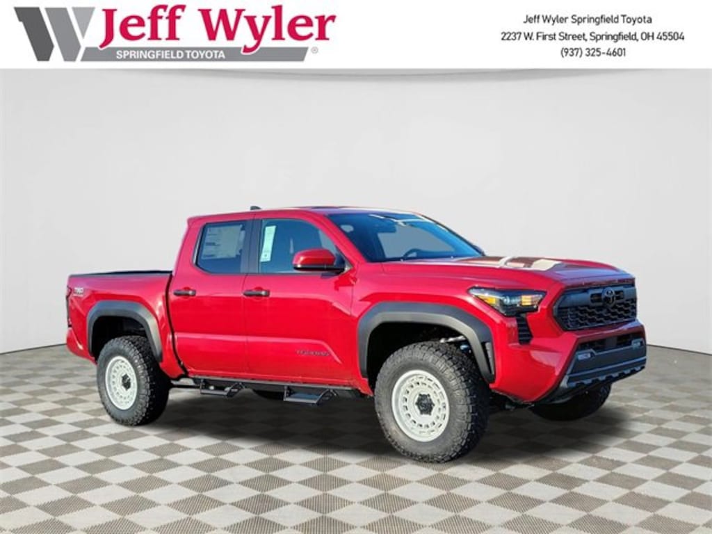 Jeff Wyler Springfield Auto Mall is excited to offer this good-looking 2026 Toyota Tacoma TRD Off-Road in Red. Well equipped with: TRD Off Road Package, 18" Wheels, 3.583 Axle Ratio, 4-Wheel Disc Brakes, 6 Speakers, ABS brakes, Air Conditioning, All Weather Floor Liners, Alloy wheels, AM/FM radio: SiriusXM, Anti-whiplash front head restraints, Apple CarPlay/Android Auto, Auto High-beam Headlights, Auto-dimming Rear-View mirror, Automatic temperature control, Brake assist, Bumpers: body-color, Driver door bin, Driver vanity mirror, Dual front impact airbags, Dual front side impact airbags, Electronic Stability Control, Emergency communication system: Safety Connect (up to 10-year trial subscription), Exterior Parking Camera Rear, Fabric Seat Trim, Four wheel independent suspension, Front anti-roll bar, Front Bucket Seats, Front Center Armrest, Front fog lights, Front reading lights, Fully automatic headlights, Heated door mirrors, Heated Seats, Illuminated entry, Knee airbag, Leather Shift Knob, Leather steering wheel, Low tire pressure warning, Occupant sensing airbag, Outside temperature display, Overhead airbag, Overhead console, Panic alarm, Passenger door bin, Passenger vanity mirror, Power door mirrors, Power steering, Power windows, Radio: 8" Toyota Audio Multimedia, Rear step bumper, Rear window defroster, Remote keyless entry, Removable Predator Step, Security system, Speed control, Speed-sensing steering, Split folding rear seat, Steering wheel mounted audio controls, Tachometer, Telescoping steering wheel, Tilt steering wheel, Traction control, Trip computer, Turn signal indicator mirrors, and Variably intermittent wipers. 19/23 City/Highway MPGWyler Family First Package Includes: NanoCure Appearance Protection: Exterior & Interior Chemical Sealant Applied to Protect Against Environmental Hazards (7 Year Warranty Coverage). Pulse- Rear end Collision Avoidance System Theft Deterrent Strategy gives you 5 Years of Coverage against vehicle Theft, Offering up to a $5,000 benefit.