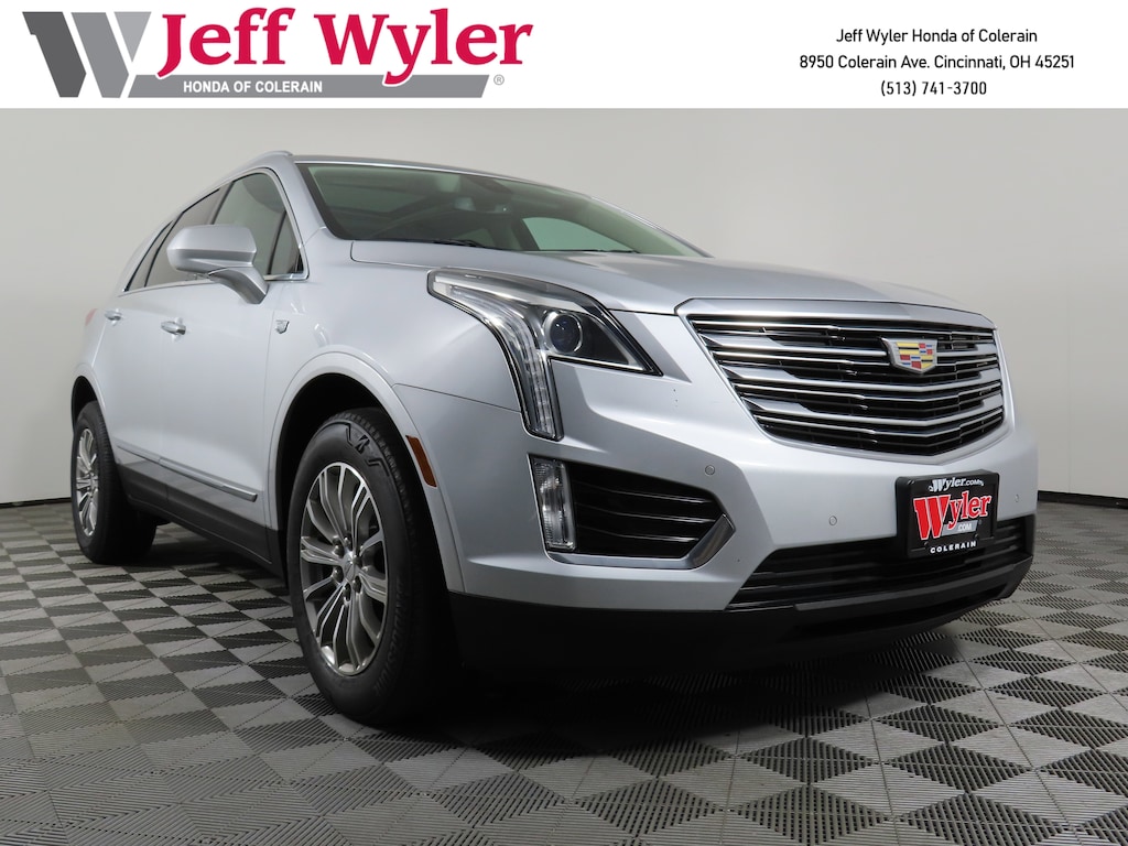 Jeff Wyler Honda of Colerain is honored to offer this outstanding 2017 Cadillac XT5 Luxury in Radiant Silver Metallic. Well equipped with: Driver Awareness Package (Following Distance Indicator, Forward Collision Alert, Front Pedestrian Detection, IntelliBeam Headlamps, Lane Keep Assist w/ Lane Departure Warning, Low Speed Front Automatic Braking, and Safety Alert Seat), Preferred Equipment Group 1SD (Automatic Dual-Zone Climate Control and Body-Color Heated Power-Adjustable Outside Mirrors), 18" x 8" Bright Machined Finish Aluminum Wheels, 2-Way Power Driver Lumbar Control Seat Adjuster, 2-Way Power Passenger Lumbar Control Seat Adjuster, 3.20 Axle Ratio, 4-Wheel Disc Brakes, 4-Wheel Independent Suspension, 8 Speakers, 8-Way Power Front Passenger Seat Adjuster, ABS brakes, Air Conditioning, Alloy wheels, AM/FM radio: SiriusXM, Apple CarPlay/Android Auto, Auto-dimming door mirrors, Auto-dimming Rear-View mirror, Automatic temperature control, Black Roof Rack Cross Rails, Bodyside moldings, Bose Premium 8-Speaker Audio System Feature, Bose Studio Surround Sound w/14-Speakers, Brake assist, Bumpers: body-color, Child-Seat-Sensing Airbag, Compass, Delay-off headlights, Driver & Front Passenger Heated Seats, Driver door bin, Driver vanity mirror, Dual front impact airbags, Dual front side impact airbags, Electronic Stability Control, Emergency communication system: OnStar Directions & Connections, Exterior Parking Camera Rear, Four wheel independent suspension, Front anti-roll bar, Front Bucket Seats, Front Center Armrest, Front dual zone A/C, Front License Plate Bracket, Front reading lights, Full Leather Seats w/Mini Perforated Inserts, Fully automatic headlights, Garage door transmitter, Genuine wood door panel insert, Heated door mirrors, Heated front seats, Heated steering wheel, Illuminated entry, Leather steering wheel, Low tire pressure warning, Memory seat, Occupant sensing airbag, Outside temperature display, Overhead airbag, Overhead console, Panic alarm, Passenger door bin, Passenger vanity mirror, Power door mirrors, Power driver seat, Power Liftgate, Power moonroof: UltraView, Power passenger seat, Power steering, Power windows, Premium audio system: Cadillac CUE, Radio data system, Radio: Cadillac CUE Info & Media Control System, Radio: Cadillac CUE Info & Media Control w/Nav, Rain sensing wipers, Rear anti-roll bar, Rear reading lights, Rear seat center armrest, Rear window defroster, Rear window wiper, Remote keyless entry, Roof rack: rails only, SiriusXM Satellite Radio, Speed control, Speed-sensing steering, Split folding rear seat, Spoiler, Steering wheel memory, Steering wheel mounted audio controls, Tachometer, Telescoping steering wheel, Tilt steering wheel, Traction control, Trip computer, Variably intermittent wipers, Voltmeter, and Wheel Locks.