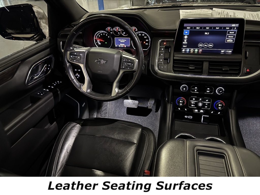 4WD/AWD, XM Radio, Bluetooth, Dual climate Control, Heated Leather Seats, Push Button Start, Backup Camera, Third Row Seating, V8 Engine, 4WD, Black Leather, 10-Way Power Driver & Passenger Seat Adjusters, 1st & 2nd Row Color-Keyed Carpeted Floor Mats, 1st & 2nd Rows All-Weather Floor Liners (LPO), 2 USB Data Ports, 2-Speed Active Electronic AutoTrac Transfer Case, 3.23 Rear Axle Ratio, 3rd row seats: split-bench, 4-Wheel Disc Brakes, 9 Speakers, ABS brakes, Air Conditioning, Alloy wheels, AM/FM radio: SiriusXM with 360L, Apple CarPlay/Android Auto, Auto High-beam Headlights, Auto-Dimming Inside Rear-View Mirror, Auto-dimming Rear-View mirror, Automatic temperature control, Black Tubular Assist Steps, Bose 9-Speaker Stereo Audio System Feature, Brake assist, Bright Front & Rear Door Sill Plates, Bumpers: body-color, Color-Keyed Carpeting Floor Covering, Compass, Delay-off headlights, Driver & Front Outboard Passenger Airbags, Driver door bin, Driver vanity mirror, Dual front impact airbags, Dual front side impact airbags, Electronic Stability Control, Emergency communication system: OnStar and Chevrolet connected services capable, Floor Console w/Storage Area, Four wheel independent suspension, Front anti-roll bar, Front Bucket Seats, Front Center Armrest, Front dual zone A/C, Front High-Approach Angle Fascia, Front High-Back Reclining Bucket Seats, Front reading lights, Fully automatic headlights, Garage door transmitter, Hands-Free Rear Power Programmable Liftgate, HD Radio, Heated door mirrors, Heated Driver & Front Passenger Seats, Heated front seats, Hill Descent Control, Illuminated entry, Infotainment Display, Leather Seat Trim, Leather steering wheel, Leather-Wrapped Steering Wheel, LED Daytime Running Lamps, Low tire pressure warning, Memory seat, Memory Settings for Driver, Occupant sensing airbag, Outside temperature display, Overhead airbag, Overhead console, Panic alarm, Passenger door bin, Passenger vanity mirror, Power door mirrors, Power driver seat, Power Liftgate, Power passenger seat, Power steering, Power windows, Preferred Equipment Group 2Z7, Premium audio system: Chevrolet Infotainment 3, Premium Smooth Ride Suspension, Radio: Chevrolet Infotainment 3 Plus System, Rain sensing wipers, Rear air conditioning, Rear anti-roll bar, Rear reading lights, Rear seat center armrest, Rear window defroster, Rear window wiper, Red Horizontal-Mounted Recovery Hooks, Remote keyless entry, Remote Start, Roof rack: rails only, Security system, SiriusXM Radio w/360L, Speed control, Speed-sensing steering, Split folding rear seat, Spoiler, Steering wheel mounted audio controls, Tachometer, Telescoping steering wheel, Tilt steering wheel, Traction control, Trip computer, Universal Home Remote, Variably intermittent wipers, Voltmeter, Wheels: 20" x 9" Machined Aluminum. 4WD 10-Speed Automatic with Overdrive EcoTec3 5.3L V8Recent Arrival!16/20 City/Highway MPGAwards: * JD Power Automotive Performance, Execution and Layout (APEAL) Study * ALG Residual ValueAsk about available certifications.