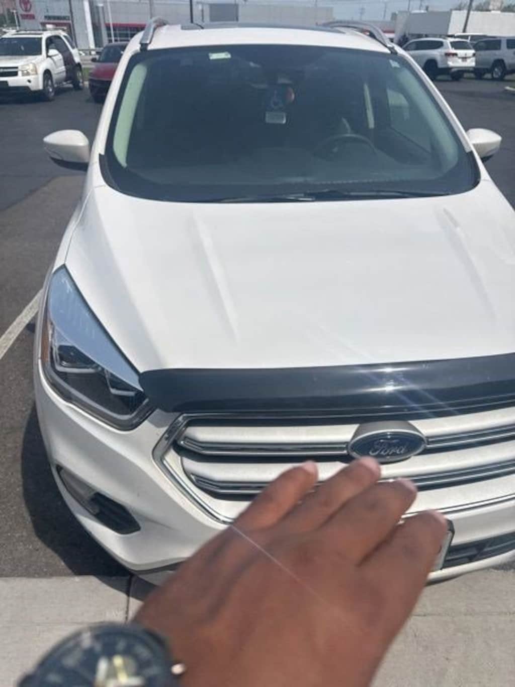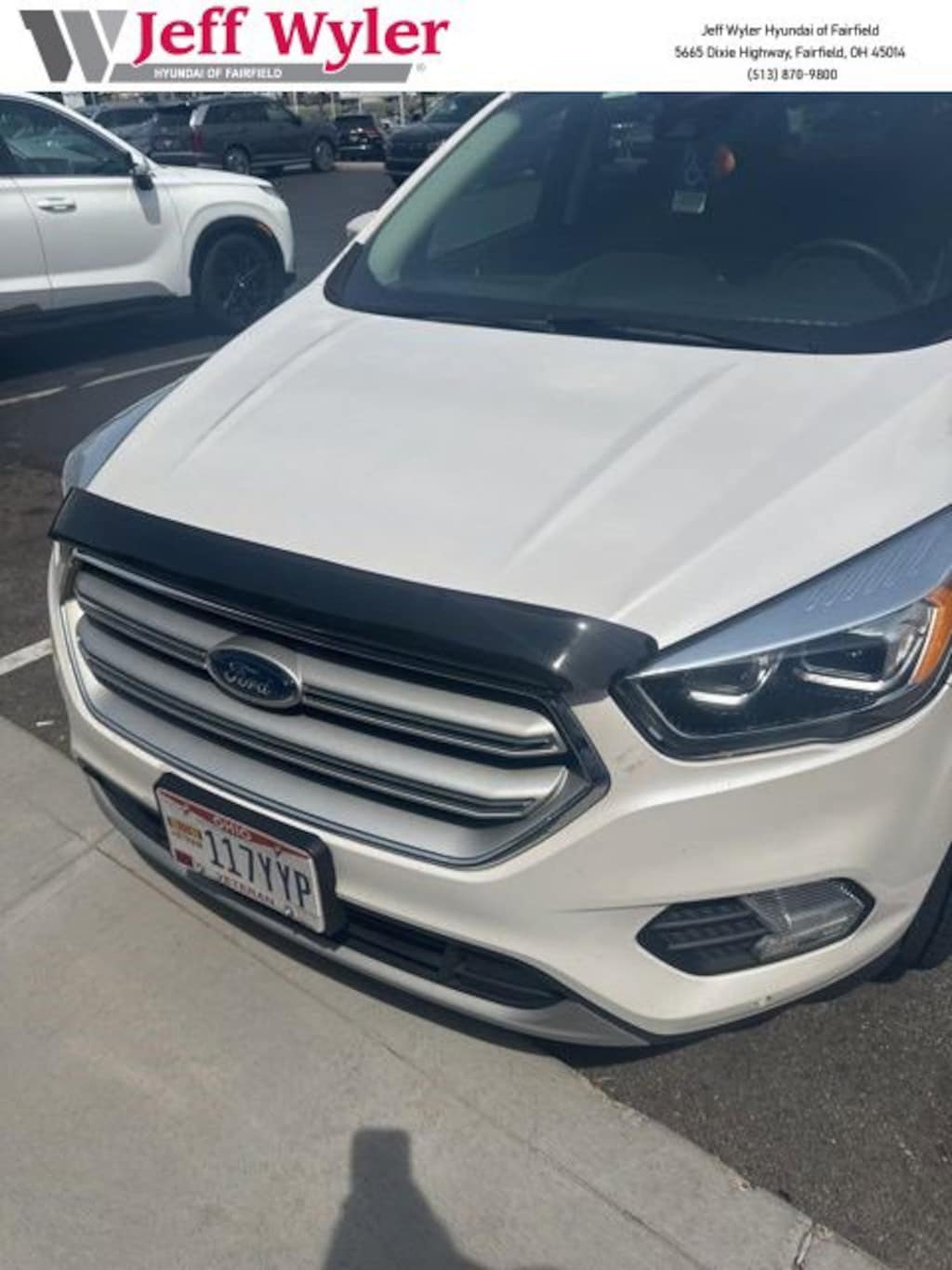 Jeff Wyler Hyundai of Fairfield is delighted to offer this fantastic 2018 Ford Escape Titanium in White Platinum Clearcoat Metallic. Well equipped with: Equipment Group 400A, Ford Safe & Smart Package (Adaptive Cruise Control & Fwd Collision Warning, Auto High-Beam Headlamps, Blind Spot Info System w/Cross-Traffic Alert, Lane-Keeping System, and Rain-Sensing Wipers), Android Auto, Apple CarPlay, CALL NOW FOR YOUR VIP APPOINTMENT 513-870-9800, FULLY SERVICED w/RECORDS, GUARANTEED FINANCING!! NO MATTER YOUR SITUATION WE CAN GET AN APPROVAL!!, THE #1 Volume dealer in the region! Come see why for yourself Today!!, WE PAY MORE FOR YOUR TRADE!!, 10 Speakers, 3.07 Axle Ratio, 4-Wheel Disc Brakes, ABS brakes, Air Conditioning, Alloy wheels, AM/FM radio: SiriusXM, AppLink/Apple CarPlay and Android Auto, Auto-dimming Rear-View mirror, Automatic temperature control, Brake assist, Bumpers: body-color, CD player, Compass, Delay-off headlights, Driver door bin, Driver vanity mirror, Dual front impact airbags, Dual front side impact airbags, Electronic Stability Control, Emergency communication system: SYNC 3 911 Assist, Exterior Parking Camera Rear, Four wheel independent suspension, Front & Rear Floor Liners, Front anti-roll bar, Front Bucket Seats, Front Center Armrest, Front dual zone A/C, Front fog lights, Front License Plate Bracket, Front reading lights, Fully automatic headlights, Garage door transmitter, Heated door mirrors, Heated front seats, Heated Leather-Trimmed Front Bucket Seats, Heated steering wheel, High-Intensity Discharge Headlights, Illuminated entry, Knee airbag, Leather Shift Knob, Low tire pressure warning, Memory seat, Navigation System, Occupant sensing airbag, Outside temperature display, Overhead airbag, Overhead console, Panic alarm, Panoramic Vista Roof, Passenger door bin, Passenger vanity mirror, Power door mirrors, Power driver seat, Power Liftgate, Power passenger seat, Power steering, Power windows, Radio data system, Radio: AM/FM Stereo w/Single-CD/MP3 Player, Rear anti-roll bar, Rear reading lights, Rear seat center armrest, Rear window defroster, Rear window wiper, Remote keyless entry, Roof rack: rails only, Security system, Speed control, Speed-sensing steering, Split folding rear seat, Steering wheel mounted audio controls, SYNC 3 Communications & Entertainment System, SYNC Connect, Tachometer, Telescoping steering wheel, Tilt steering wheel, Traction control, Trip computer, Turn signal indicator mirrors, Variably intermittent wipers, Voice-Activated Touchscreen Navigation System, Wheels: 18" Sparkle Silver-Painted Aluminum, and Wheels: 19" Bright-Machined Aluminum. TO CHECK ON THE AVAILABILITY OF THIS VEHICLE REACH OUT TO ONE OF OUR TEAM MEMBERS!! ALSO SHOP ONLINE AT https://www.jeffwylerhyundaioffairfield.com/ Proudly Serving: Cincinnati, Dayton, Columbus, Louisville, Lexington, Indianapolis, Hamilton, Florence, Alexandria, Beavercreek, Springdale, West Chester, Monroe, Fairfield, Kenwood, Newport and all of greater Cincinnati Ohio, Indiana, and Northern Kentucky.