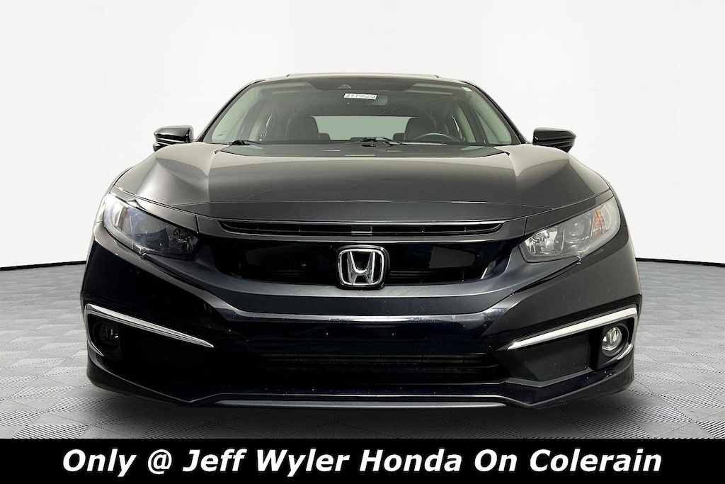 Jeff Wyler Honda of Colerain is proud to offer this superb-looking 2020 Honda Civic EX-L in Crystal Black Pearl. Well equipped with: 4-Wheel Disc Brakes, 8 Speakers, ABS brakes, Adaptive Cruise Control: Adaptive Cruise Control (ACC) with Low-Speed Follow, Air Conditioning, Alloy wheels, AM/FM radio: SiriusXM, Apple CarPlay/Android Auto, Auto High-beam Headlights, Auto-dimming Rear-View mirror, Automatic temperature control, Brake assist, Bumpers: body-color, Delay-off headlights, Driver door bin, Driver vanity mirror, Dual front impact airbags, Dual front side impact airbags, Electronic Stability Control, Emergency communication system: HondaLink, Exterior Parking Camera Rear, Forward collision: Collision Mitigation Braking System (CMBS) + FCW mitigation, Four wheel independent suspension, Front anti-roll bar, Front Bucket Seats, Front Center Armrest, Front dual zone A/C, Front fog lights, Front reading lights, Fully automatic headlights, Garage door transmitter: HomeLink, Heated door mirrors, Heated Front Bucket Seats, Heated front seats, Illuminated entry, Lane departure: Lane Keeping Assist System (LKAS) active, Leather Seat Trim, Leather Shift Knob, Low tire pressure warning, Occupant sensing airbag, Outside temperature display, Overhead airbag, Overhead console, Panic alarm, Passenger door bin, Passenger vanity mirror, Power door mirrors, Power driver seat, Power moonroof, Power steering, Power windows, Radio data system, Radio: 180-Watt AM/FM/HD/SiriusXM Audio System, Rear anti-roll bar, Rear seat center armrest, Rear window defroster, Remote keyless entry, Security system, Speed control, Speed-sensing steering, Speed-Sensitive Wipers, Split folding rear seat, Spoiler, Steering wheel mounted audio controls, Tachometer, Telescoping steering wheel, Tilt steering wheel, Traction control, Trip computer, and Variably intermittent wipers.