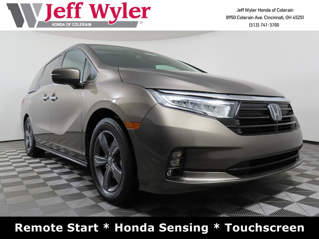 Jeff Wyler Honda of Colerain is honored to offer this gorgeous-looking 2021 Honda Odyssey EX in Gray. Well equipped with: 3.61 Axle Ratio, 3rd row seats: split-bench, 4-Wheel Disc Brakes, 7 Speakers, A/V remote: CabinControl, ABS brakes, Adaptive Cruise Control: Adaptive Cruise Control (ACC) with Low-Speed Follow, Air Conditioning, Alloy wheels, AM/FM radio: SiriusXM, Anti-whiplash front head restraints, Apple CarPlay/Android Auto, Auto High-beam Headlights, Automatic temperature control, Blind Spot Information (BSI) System warning, Brake assist, Bumpers: body-color, Cloth Seat Trim, Delay-off headlights, Driver door bin, Driver vanity mirror, Driver's Seat Mounted Armrest, Dual front impact airbags, Dual front side impact airbags, Electronic Stability Control, Exterior Parking Camera Rear, Forward collision: Collision Mitigation Braking System (CMBS) + FCW mitigation, Four wheel independent suspension, Front anti-roll bar, Front Bucket Seats, Front dual zone A/C, Front fog lights, Front reading lights, Fully automatic headlights, Heated door mirrors, Heated Front Bucket Seats, Heated front seats, Illuminated entry, Knee airbag, Lane departure: Lane Keeping Assist System (LKAS) active, Low tire pressure warning, Occupant sensing airbag, Outside temperature display, Overhead airbag, Overhead console, Panic alarm, Passenger door bin, Passenger seat mounted armrest, Passenger vanity mirror, Power door mirrors, Power driver seat, Power passenger seat, Power steering, Power windows, Radio data system, Radio: 160-Watt AM/FM/HD/SiriusXM Audio System, Rear air conditioning, Rear anti-roll bar, Rear reading lights, Rear seat center armrest, Rear window defroster, Rear window wiper, Reclining 3rd row seat, Remote keyless entry, Security system, Speed control, Speed-sensing steering, Speed-Sensitive Wipers, Split folding rear seat, Spoiler, Steering wheel mounted audio controls, Tachometer, Telescoping steering wheel, Tilt steering wheel, Traction control, Trip computer, Turn signal indicator mirrors, Variably intermittent wipers, and Wheels: 18" Pewter Gray-Painted Alloy.