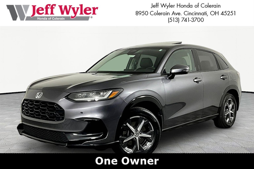Jeff Wyler Honda of Colerain is very proud to offer this charming 2025 Honda HR-V EX-L in Modern Steel Metallic. Well equipped with: 17" Machine-Finished Alloy Wheels, 180-Watt Audio System with 8 Speakers, 4-Wheel Disc Brakes, 5.436 Axle Ratio, 8 Speakers, ABS brakes, Adaptive Cruise Control: Adaptive Cruise Control (ACC) with Low-Speed Follow, Air Conditioning, Alloy wheels, AM/FM radio: SiriusXM, Apple CarPlay/Android Auto, Auto High-beam Headlights, Auto-dimming Rear-View mirror, Automatic temperature control, Blind Spot Information (BSI) System warning, Brake assist, Bumpers: body-color, Compass, Delay-off headlights, Driver door bin, Driver vanity mirror, Dual front impact airbags, Dual front side impact airbags, Electronic Stability Control, Exterior Parking Camera Rear, Four wheel independent suspension, Front anti-roll bar, Front Bucket Seats, Front Center Armrest, Front dual zone A/C, Front reading lights, Fully automatic headlights, Heated door mirrors, Heated Front Bucket Seats, Heated front seats, Illuminated entry, Knee airbag, Leather Shift Knob, Leather steering wheel, Leather-Trimmed Seats, Low tire pressure warning, Occupant sensing airbag, Outside temperature display, Overhead airbag, Panic alarm, Passenger door bin, Passenger vanity mirror, Power door mirrors, Power driver seat, Power moonroof, Power steering, Power windows, Radio data system, Rear anti-roll bar, Rear reading lights, Rear side impact airbag, Rear window defroster, Rear window wiper, Remote keyless entry, Security system, SiriusXM, Speed control, Speed-sensing steering, Split folding rear seat, Spoiler, Steering wheel mounted audio controls, Tachometer, Telescoping steering wheel, Tilt steering wheel, Traction control, Trip computer, Turn signal indicator mirrors, and Variably intermittent wipers.