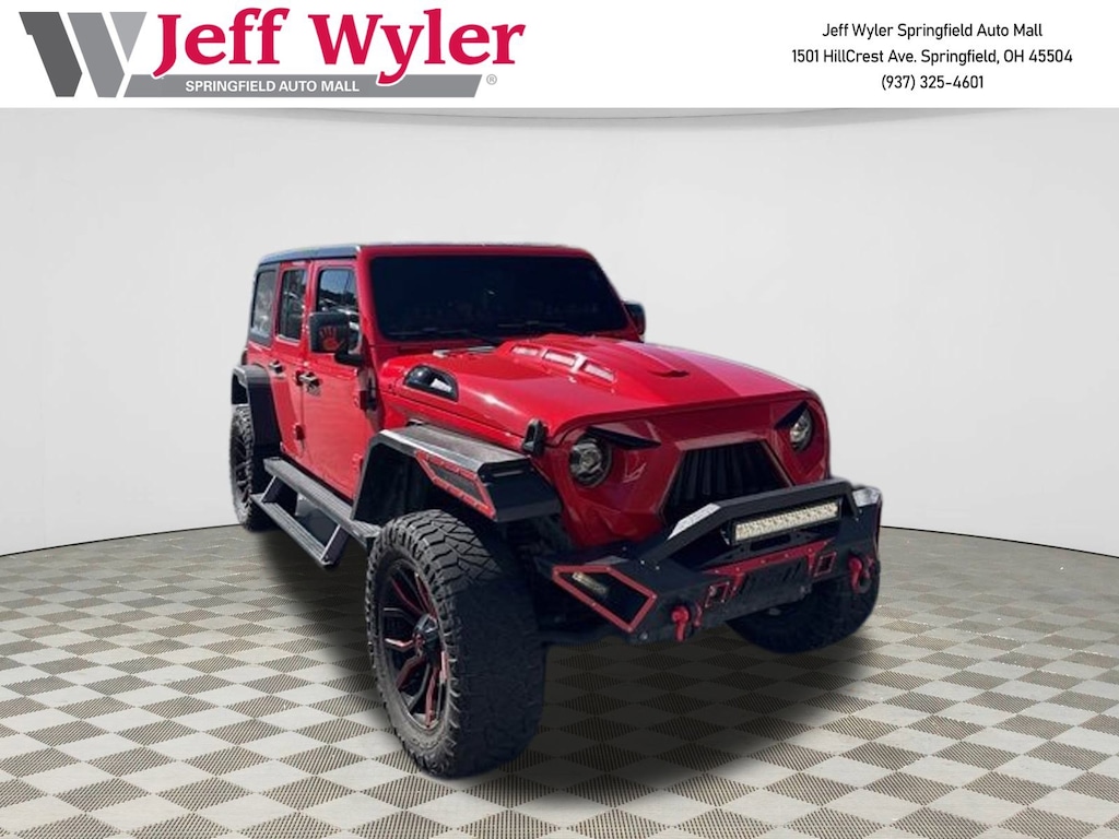 Jeff Wyler Springfield Auto Mall is excited to offer this good-looking 2020 Jeep Wrangler Unlimited Sport S in Firecracker Red Clearcoat. Well equipped with: Cold Weather Group (Heated Front Seats and Heated Steering Wheel), Convenience Group (Universal Garage Door Opener), Quick Order Package 22S Sport S (Automatic Headlamps, Deep Tint Sunscreen Windows, Front 1-Touch Down Power Windows, Leather Wrapped Steering Wheel, Power Heated Mirrors, Remote Keyless Entry, Security Alarm, Speed Sensitive Power Locks, Sun Visors w/Illuminated Vanity Mirrors, and Wheels: 17" x 7.5" Tech Silver Aluminum), Technology Group (1-Year SiriusXM Radio Service, 7.0" Touchscreen Display, Air Conditioning w/Auto Temperature Control, Air Filtering, Cluster 7.0" TFT Color Display, GPS Antenna Input, Integrated Center Stack Radio, Radio: Uconnect 4 w/7" Display, SiriusXM Satellite Radio, and USB Host Flip), 3.45 Rear Axle Ratio, 4-Wheel Disc Brakes, 8 Speakers, ABS brakes, Air Conditioning, AM/FM radio, Apple CarPlay (DISC), Aux Battery, Black 3-Piece Hard Top, Brake assist, Cloth Low-Back Bucket Seats, Compass, Delay-off headlights, Driver door bin, Driver vanity mirror, Dual front impact airbags, Dual front side impact airbags, Electronic Stability Control, Freedom Panel Storage Bag, Front anti-roll bar, Front Bucket Seats, Front Center Armrest w/Storage, Front fog lights, Front reading lights, Google Android Auto (DISC), Integrated roll-over protection, Integrated Voice Command w/Bluetooth, Low tire pressure warning, No Soft Top, Non-Lock Fuel Cap w/o Discriminator, Normal Duty Suspension, Occupant sensing airbag, Outside temperature display, ParkView Rear Back-Up Camera, Passenger door bin, Passenger vanity mirror, Power steering, Radio data system, Radio: Uconnect 3 w/5" Display, Rear anti-roll bar, Rear reading lights, Rear Window Defroster, Rear Window Wiper/Washer, Speed control, Split folding rear seat, Steering wheel mounted audio controls, Stop-Start Dual Battery System, Tachometer, Telescoping steering wheel, Tilt steering wheel, Traction control, Trip computer, Variably intermittent wipers, and Wheels: 17" x 7.5" Black Steel Styled. Ask about available certifications. Used vehicles 10 years of age or newer with less than 100,000 miles are eligible for the Wyler Assurance Program, but eligible vehicles must pass our reconditioning process and multi-point inspection. Provided the vehicle passes inspection, vehicles will be eligible for the 6 month/6,000 mile limited warranty. The 6 month/6,000 mile limited warranty is NOT available on AS-IS vehicles, wholesale vehicles, lease buyback/pass-thru vehicles or un-inspected vehicles. Note that this program can also apply to vehicles where the remaining factory coverage is less than 6 months or 6,000 miles. Please check the Federal Trade Commission (FTC) Buyers guide on the vehicle for full details as to whether or not warranty coverage may apply. Contact Dealer for additional details. The Wyler Assurance 6 month/6,000 Mile limited warranty ends 6 months from the date of the Retail Purchase Agreement (BUYERS ORDER) or when the vehicle's odometer registers 6,000 additional miles to the mileage listed on the BUYERS ORDER, whichever comes first. Your Deductible - The warranty holder on your contract pays the first $100 of each covered repair.
