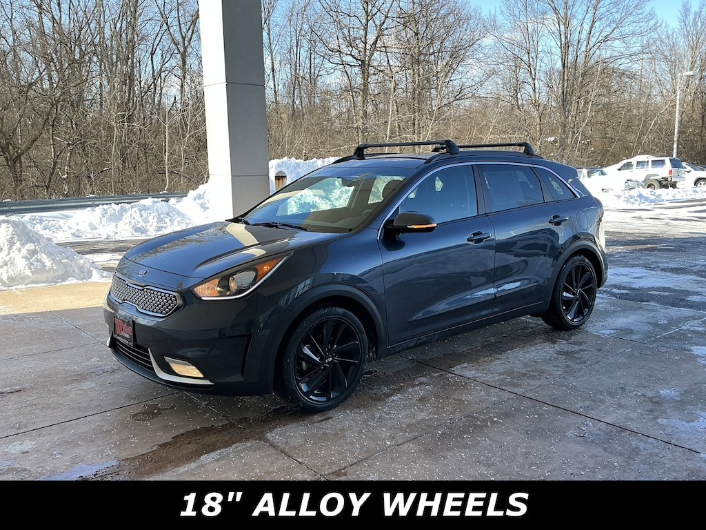 Jeff Wyler Springfield Auto Mall is pumped up to offer this beautiful 2018 Kia Niro EX in Platinum Graphite. Well equipped with: EX Touring Graphite Edition (DISC) (Black Color Roof Rails, Front Heated Bucket Seats, Radio: harman/kardon Premium Audio System, Unique Metallic Front Grille Insert, and Wheels: 18" Alloy (DISC)), 3.227 Axle Ratio, 4-Wheel Disc Brakes, 6 Speakers, ABS brakes, Air Conditioning, Alloy wheels, AM/FM radio: SiriusXM, Apple CarPlay & Android Auto, Auto-dimming Rear-View mirror, Automatic temperature control, Bodyside moldings, Brake assist, Bumpers: body-color, Cargo Tray, Carpet Floor Mats, Cloth & Leather-Trimmed Seats, Delay-off headlights, Driver door bin, Driver vanity mirror, Dual front impact airbags, Dual front side impact airbags, Electronic Stability Control, Emergency communication system: UVO eServices 911 Connect, Exterior Parking Camera Rear, Four wheel independent suspension, Front anti-roll bar, Front Bucket Seats, Front Center Armrest, Front dual zone A/C, Front fog lights, Front reading lights, Fully automatic headlights, Heated door mirrors, Heated Front Bucket Seats, Heated front seats, High Load Cargo Mat, Illuminated entry, Knee airbag, Leather Shift Knob, Low tire pressure warning, Occupant sensing airbag, Outside temperature display, Overhead airbag, Overhead console, Panic alarm, Passenger door bin, Passenger vanity mirror, Power door mirrors, Power steering, Power windows, Radio: AM/FM/MP3/SiriusXM Satellite, Rear anti-roll bar, Rear seat center armrest, Rear window defroster, Rear window wiper, Remote keyless entry, Roof rack: rails only, Security system, Speed control, Speed-sensing steering, Split folding rear seat, Spoiler, Steering wheel mounted audio controls, Telescoping steering wheel, Tilt steering wheel, Traction control, Trip computer, Turn signal indicator mirrors, Variably intermittent wipers, and Wheels: 16" Alloy w/Full Covers. Awards: * Green Car Journal Green SUV of the YearBased on 2017 EPA mileage ratings. Use for comparison purposes only. Your mileage will vary depending on how you drive and maintain your vehicle, driving conditions and other factors. Ask about available certifications. Used vehicles 10 years of age or newer with less than 100,000 miles are eligible for the Wyler Assurance Program, but eligible vehicles must pass our reconditioning process and multi-point inspection. Provided the vehicle passes inspection, vehicles will be eligible for the 6 month/6,000 mile limited warranty. The 6 month/6,000 mile limited warranty is NOT available on AS-IS vehicles, wholesale vehicles, lease buyback/pass-thru vehicles or un-inspected vehicles. Note that this program can also apply to vehicles where the remaining factory coverage is less than 6 months or 6,000 miles. Please check the Federal Trade Commission (FTC) Buyers guide on the vehicle for full details as to whether or not warranty coverage may apply. Contact Dealer for additional details. The Wyler Assurance 6 month/6,000 Mile limited warranty ends 6 months from the date of the Retail Purchase Agreement (BUYERS ORDER) or when the vehicle's odometer registers 6,000 additional miles to the mileage listed on the BUYERS ORDER, whichever comes first. Your Deductible - The warranty holder on your contract pays the first $100 of each covered repair.