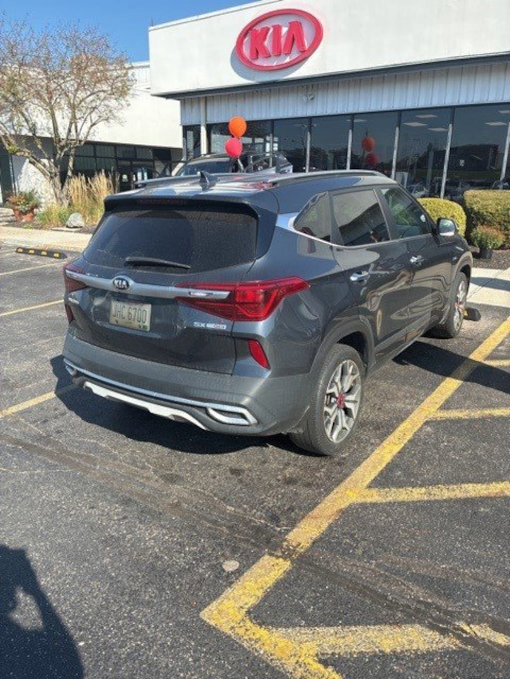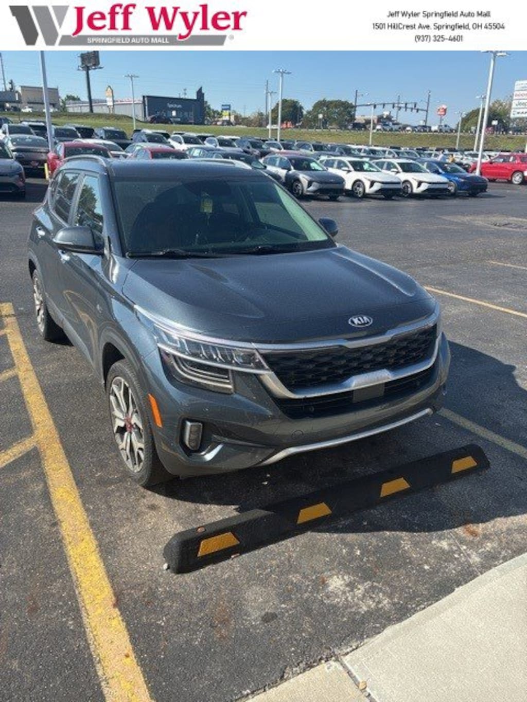 Jeff Wyler Springfield Auto Mall is proud to offer this gorgeous 2021 Kia Seltos SX in Gravity Gray. Well equipped with: SX Sunroof Package (Sunroof), 18" Alloy Wheels, 4-Wheel Disc Brakes, 4.643 Axle Ratio, 8 Speakers, ABS brakes, Air Conditioning, Alloy wheels, AM/FM radio: SiriusXM, Apple CarPlay & Android Auto, Auto-dimming Rear-View mirror, Automatic temperature control, Brake assist, Bumpers: body-color, Carpeted Floor Mats, Delay-off headlights, Driver door bin, Driver vanity mirror, Dual front impact airbags, Dual front side impact airbags, Electronic Stability Control, Emergency communication system, Exterior Parking Camera Rear, Four wheel independent suspension, Front anti-roll bar, Front Bucket Seats, Front Center Armrest, Front fog lights, Front reading lights, Fully automatic headlights, Heated door mirrors, Heated Front Bucket Seats, Heated front seats, Illuminated entry, Leather Seat Trim, Leather Shift Knob, Low tire pressure warning, Mud Guards, Navigation System, Occupant sensing airbag, Outside temperature display, Overhead airbag, Overhead console, Panic alarm, Passenger door bin, Passenger vanity mirror, Power door mirrors, Power driver seat, Power steering, Power windows, Puddle Light, Radio: AM/FM/MP3 Display Audio, Rear seat center armrest, Rear window defroster, Rear window wiper, Remote keyless entry, Security system, Smart Key w/ Push Button and Remote Start, Speed control, Speed-sensing steering, Split folding rear seat, Spoiler, Steering wheel mounted audio controls, Tachometer, Telescoping steering wheel, Tilt steering wheel, Traction control, Trip computer, Turn signal indicator mirrors, and Variably intermittent wipers. Ask about available certifications. Used vehicles 10 years of age or newer with less than 100,000 miles are eligible for the Wyler Assurance Program, but eligible vehicles must pass our reconditioning process and multi-point inspection. Provided the vehicle passes inspection, vehicles will be eligible for the 6 month/6,000 mile limited warranty. The 6 month/6,000 mile limited warranty is NOT available on AS-IS vehicles, wholesale vehicles, lease buyback/pass-thru vehicles or un-inspected vehicles. Note that this program can also apply to vehicles where the remaining factory coverage is less than 6 months or 6,000 miles. Please check the Federal Trade Commission (FTC) Buyers guide on the vehicle for full details as to whether or not warranty coverage may apply. Contact Dealer for additional details. The Wyler Assurance 6 month/6,000 Mile limited warranty ends 6 months from the date of the Retail Purchase Agreement (BUYERS ORDER) or when the vehicle's odometer registers 6,000 additional miles to the mileage listed on the BUYERS ORDER, whichever comes first. Your Deductible - The warranty holder on your contract pays the first $100 of each covered repair.