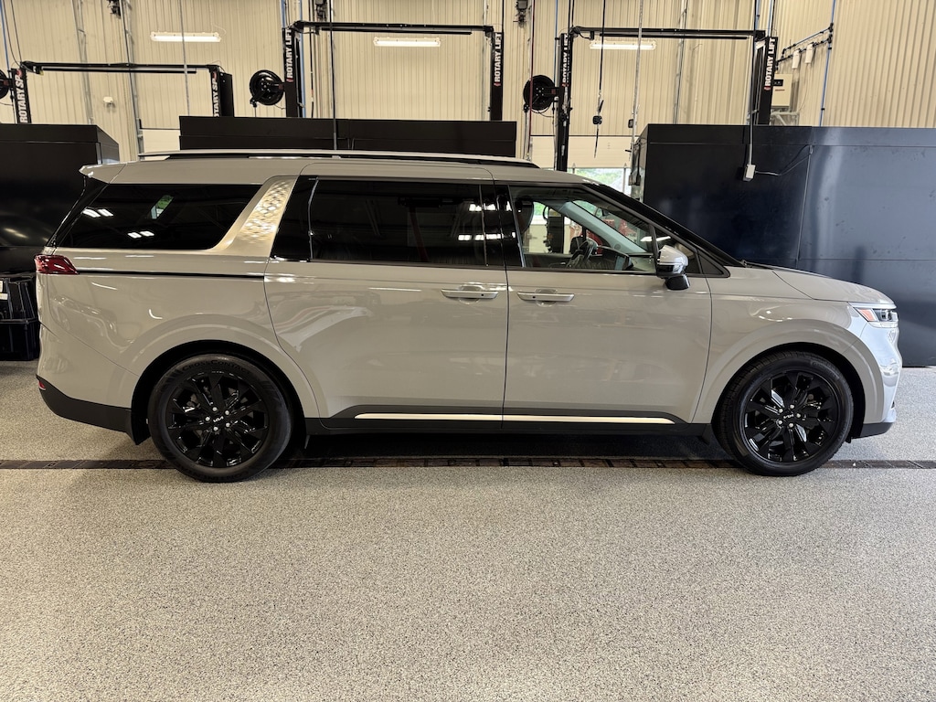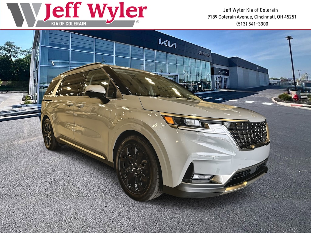Jeff Wyler Kia of Colerain is excited to offer this great 2023 Kia Carnival SX in Ceramic Silver. 3.51 Axle Ratio, 3rd row seats: split-bench, 4-Wheel Disc Brakes, 8 Speakers, ABS brakes, Air Conditioning, Alloy wheels, AM/FM radio: SiriusXM, Apple CarPlay & Android Auto, Artificial Leather Seat Trim, Auto High-beam Headlights, Automatic temperature control, Brake assist, Bumpers: body-color, Carpeted Floor Mats (8-Passenger), Compass, Delay-off headlights, Driver door bin, Driver vanity mirror, Driver's Seat Integrated Memory System, Dual front impact airbags, Dual front side impact airbags, Electronic Stability Control, Emergency communication system, Exterior Parking Camera Rear, Four wheel independent suspension, Front anti-roll bar, Front Bucket Seats, Front Center Armrest, Front dual zone A/C, Front fog lights, Front reading lights, Fully automatic headlights, Heated & Ventilated Front Bucket Seats, Heated door mirrors, Heated front seats, Illuminated entry, Knee airbag, Leather Shift Knob, Leather steering wheel, Low tire pressure warning, Memory seat, Mud Guards, Navigation System, Occupant sensing airbag, Outside temperature display, Overhead airbag, Overhead console, Panic alarm, Passenger door bin, Passenger vanity mirror, Power door mirrors, Power driver seat, Power Liftgate, Power passenger seat, Power steering, Power windows, Radio: AM/FM/HD Audio System, Rear air conditioning, Rear anti-roll bar, Rear reading lights, Rear window defroster, Rear window wiper, Reclining 3rd row seat, Remote keyless entry, Roof rack: rails only, Security system, Speed control, Speed-sensing steering, Split folding rear seat, Spoiler, Steering wheel mounted audio controls, Tachometer, Telescoping steering wheel, Tilt steering wheel, Traction control, Trip computer, Turn signal indicator mirrors, Variably intermittent wipers, Ventilated front seats, and Wheels: 7.5J x 19" Black Painted Alloy Our PRE-OWNED vehicles are put through a rigorous 167- POINT QUALITY ASSURANCE INSPECTION along with an average amount of over $1,400.00 SPENT to recondition each vehicle so we can be sure to deliver you the highest quality vehicle like you deserve! ***ONLINE PRICE DOES NOT INCLUDE WYLER FAMILY FIRST PACKAGE***