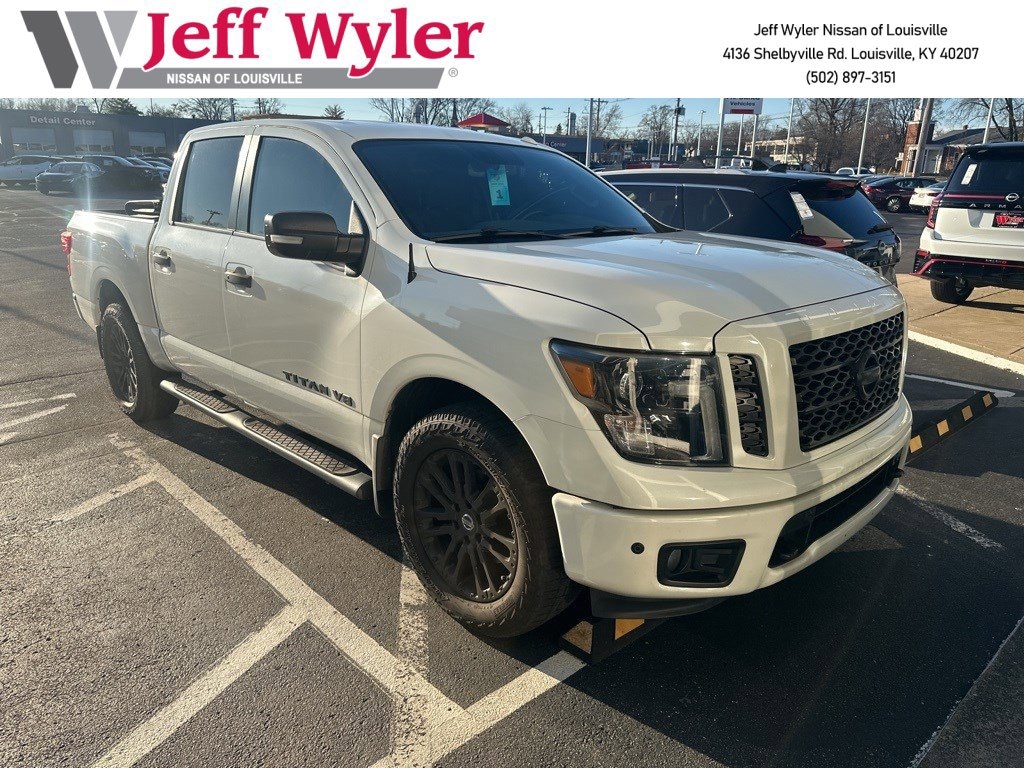 Jeff Wyler Nissan of Louisville is excited to offer this attractive-looking 2018 Nissan Titan SV in Pearl White Metallic. ** HOME DELIVERY OPTIONS! ** Midnight Edition (Black Exterior Badging, Black Fog Lamp Finisher, Black Mirrors & Door Handles, Black Step Rails, Body Color Front & Rear Bumpers, Body Color Front Grille w/Dark Insert, Charcoal Interior Trim, and Dark Headlamps), SV Convenience Package (4-Pin/7-Pin Wiring Harness Connector (Rear Bumper), Auto-Dimming Rear-View Mirror, Automatic On/Off Headlights, Blind Spot Warning w/Rear Cross Traffic Alert, Chrome Interior Door Locks, Convex Spotter Mirror, Dual Zone Automatic HVAC, Front & Rear Parking Sensors, Heated Front Captain's Chairs, Intelligent Key System, Leather-Wrapped Steering Wheel, Painted Rear Bumper, Power Sliding Rear Window w/Defogger, Radio: Nissan Navigation System w/Voice Guidance, Rain Sensing Wipers, Rear Air Conditioning Vents, Receiver Hitch, Siri Eyes Free, and Universal Garage Door Opener), 4WD, 2.937 Axle Ratio, 4-Wheel Disc Brakes, 5.5' Drop-In Bed Liner, 6 Speakers, ABS brakes, Air Conditioning, Alloy wheels, AM/FM radio: SiriusXM, Brake assist, Bumpers: chrome, CD player, Cloth Seat Trim, Driver door bin, Driver vanity mirror, Dual front impact airbags, Dual front side impact airbags, Electronic Stability Control, Front anti-roll bar, Front Center Armrest w/Storage, Front Manual Split Bench Seat (40/20/40), Front reading lights, Front wheel independent suspension, Heated door mirrors, Illuminated entry, Leather Seat Trim, Low tire pressure warning, Occupant sensing airbag, Outside temperature display, Overhead airbag, Overhead console, Panic alarm, Passenger door bin, Passenger vanity mirror, Power door mirrors, Power steering, Power windows, Radio data system, Radio: NissanConnect AM/FM w/SiriusXM, Rear anti-roll bar, Rear seat center armrest, Rear step bumper, Rear window defroster, Remote keyless entry, Security system, Speed control, Speed-sensing steering, Speed-Sensitive Wipers, Splash Guards, Split folding rear seat, Steering wheel mounted audio controls, Tachometer, Telescoping steering wheel, Tilt steering wheel, Traction control, Trip computer, Turn signal indicator mirrors, Variably intermittent wipers, Voltmeter, and Wheels: 18" x 8" Silver Painted Alloy Our PRE-OWNED vehicles are put through a rigorous 167- POINT QUALITY ASSURANCE INSPECTION along with an average amount of over $1,400.00 SPENT to recondition each vehicle so we can be sure to deliver you the highest quality vehicle like you deserve! ***ONLINE PRICE DOES NOT INCLUDE WYLER FAMILY FIRST PACKAGE*** Stop by 4136 Shelbyville Road to see for yourself, or give us a call @ 502-897-3151 to schedule your test drive! 4WD.