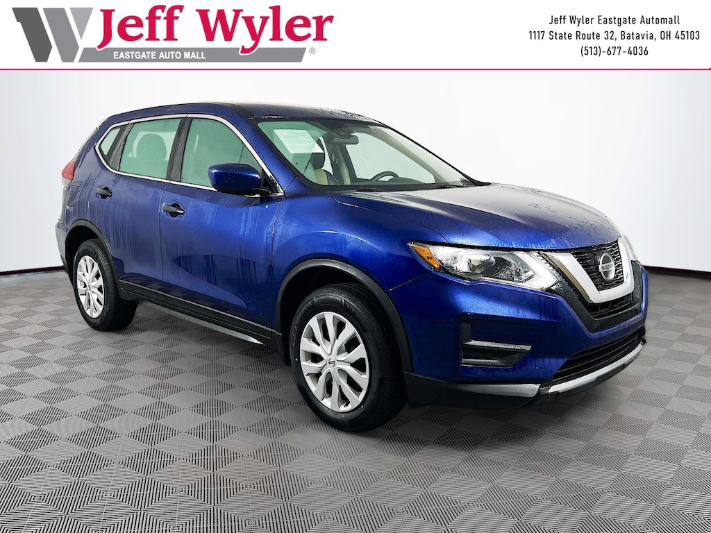 Jeff Wyler Eastgate Auto Mall is pumped up to offer this attractive-looking 2020 Nissan Rogue S in Caspian Blue Metallic. Well equipped with: 17" Aluminum Alloy Wheels, 4 Speakers, 4-Wheel Disc Brakes, 6.386 Axle Ratio, ABS brakes, Air Conditioning, AM/FM radio: SiriusXM, Anti-whiplash front head restraints, Auto High-beam Headlights, Black Splash Guards (Set of 4), Blind Spot Warning, Brake assist, Bumpers: body-color, CD player, Chrome Rear Bumper Protector, Cloth Seat Trim, Delay-off headlights, Driver door bin, Driver vanity mirror, Dual front impact airbags, Dual front side impact airbags, Electronic Stability Control, First Aid Kit, Floor Mats & 2-PC Cargo Area Protector, Four wheel independent suspension, Front anti-roll bar, Front Bucket Seats, Front Center Armrest w/Storage, Front reading lights, Fully automatic headlights, Illuminated entry, Lane Departure Warning System, Low tire pressure warning, NissanConnect featuring Apple CarPlay and Android Auto, Occupant sensing airbag, Outside temperature display, Overhead airbag, Overhead console, Panic alarm, Passenger door bin, Passenger vanity mirror, Power door mirrors, Power steering, Power windows, Radio data system, Radio: AM/FM/CD/AUX, Rear anti-roll bar, Rear seat center armrest, Rear USB Ports, Rear window defroster, Rear window wiper, Remote keyless entry, Retractable Cargo Cover, Security system, Speed control, Speed-sensing steering, Split folding rear seat, Spoiler, Steering wheel mounted audio controls, Tachometer, Telescoping steering wheel, Tilt steering wheel, Traction control, Trip computer, Variably intermittent wipers, and Wheels: 17" Steel w/Full Covers. CARFAX One-Owner. Clean CARFAX. Ask about available certifications. Used vehicles 10 years of age or newer with less than 100,000 miles are eligible for the Wyler Assurance Program, but eligible vehicles must pass our reconditioning process and multi-point inspection. Provided the vehicle passes inspection, vehicles will be eligible for the 6 month/6,000 mile limited warranty. The 6 month/6,000 mile limited warranty is NOT available on AS-IS vehicles, wholesale vehicles, lease buyback/pass-thru vehicles or un-inspected vehicles. Note that this program can also apply to vehicles where the remaining factory coverage is less than 6 months or 6,000 miles. Please check the Federal Trade Commission (FTC) Buyers guide on the vehicle for full details as to whether or not warranty coverage may apply. Contact Dealer for additional details. The Wyler Assurance 6 month/6,000 Mile limited warranty ends 6 months from the date of the Retail Purchase Agreement (BUYERS ORDER) or when the vehicle's odometer registers 6,000 additional miles to the mileage listed on the BUYERS ORDER, whichever comes first. Your Deductible - The warranty holder on your contract pays the first $100 of each covered repair.