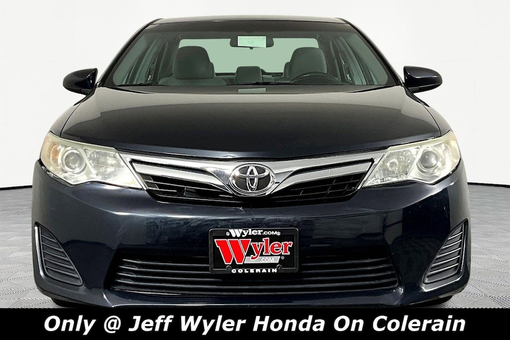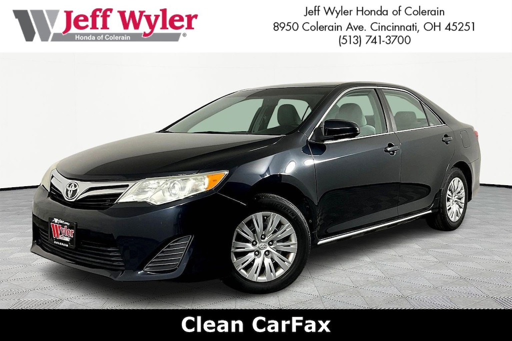 Jeff Wyler Honda of Colerain is delighted to offer this attractive 2013 Toyota Camry LE in Attitude Black Metallic. Well equipped with: ABS brakes, Electronic Stability Control, Illuminated entry, Low tire pressure warning, Remote keyless entry, Traction control, 4-Wheel Disc Brakes, 6 Speakers, 6.5J x 16" Steel Wheels w/Covers, Air Conditioning, AM/FM radio, Brake assist, Bumpers: body-color, CD player, Delay-off headlights, Driver door bin, Driver vanity mirror, Dual front impact airbags, Dual front side impact airbags, Fabric Seat Trim, Four wheel independent suspension, Front anti-roll bar, Front Bucket Seats, Front Center Armrest, Front reading lights, Fully automatic headlights, Knee airbag, Occupant sensing airbag, Outside temperature display, Overhead airbag, Overhead console, Panic alarm, Passenger door bin, Passenger vanity mirror, Power door mirrors, Power steering, Power windows, Radio: AM/FM/CD Player w/6.1" Touch Screen, Rear anti-roll bar, Rear seat center armrest, Rear side impact airbag, Rear window defroster, Speed control, Speed-sensing steering, Split folding rear seat, Steering wheel mounted audio controls, Tachometer, Telescoping steering wheel, Tilt steering wheel, Trip computer, and Variably intermittent wipers.