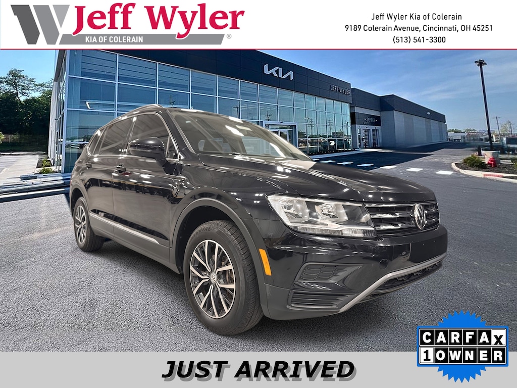 Jeff Wyler Kia of Colerain is very proud to offer this good-looking 2020 Volkswagen Tiguan 2.0T SE in Deep Black Pearl. 3.33 Axle Ratio, 3rd row seats: bench, 4-Wheel Disc Brakes, 4-Wheel Independent Suspension, 6 Speakers, ABS brakes, Air Conditioning, Alloy wheels, AM/FM radio: SiriusXM, Automatic temperature control, Brake assist, Bumpers: body-color, Compass, Delay-off headlights, Driver door bin, Driver vanity mirror, Dual front impact airbags, Dual front side impact airbags, Electronic Stability Control, Emergency communication system: VW Car-Net services (capabilities require enrollment or subscription), Exterior Parking Camera Rear, Forward collision: FCW w/Autonomous Emergency Braking mitigation, Four wheel independent suspension, Front anti-roll bar, Front Bucket Seats, Front Center Armrest, Front dual zone A/C, Front reading lights, Fully automatic headlights, Heated door mirrors, Heated Front Comfort Seats, Heated front seats, Illuminated entry, Leather Shift Knob, Low tire pressure warning, Occupant sensing airbag, Outside temperature display, Overhead airbag, Overhead console, Panic alarm, Passenger door bin, Passenger vanity mirror, Perforated V-Tex Leatherette Seating Surfaces, Power door mirrors, Power driver seat, Power steering, Power windows, Radio data system, Rear anti-roll bar, Rear reading lights, Rear seat center armrest, Rear window defroster, Rear window wiper, Remote keyless entry, Roadside Assistance Kit, Roof rack: rails only, Security system, Speed control, Speed-sensing steering, Split folding rear seat, Spoiler, Steering wheel mounted audio controls, Tachometer, Telescoping steering wheel, Tilt steering wheel, Traction control, Trip computer, Turn signal indicator mirrors, Variably intermittent wipers, and VW App-Connect (w/Apple CarPlay, Android Auto & MirrorLink) Our PRE-OWNED vehicles are put through a rigorous 167- POINT QUALITY ASSURANCE INSPECTION along with an average amount of over $1,400.00 SPENT to recondition each vehicle so we can be sure to deliver you the highest quality vehicle like you deserve! ***ONLINE PRICE DOES NOT INCLUDE WYLER FAMILY FIRST PACKAGE***